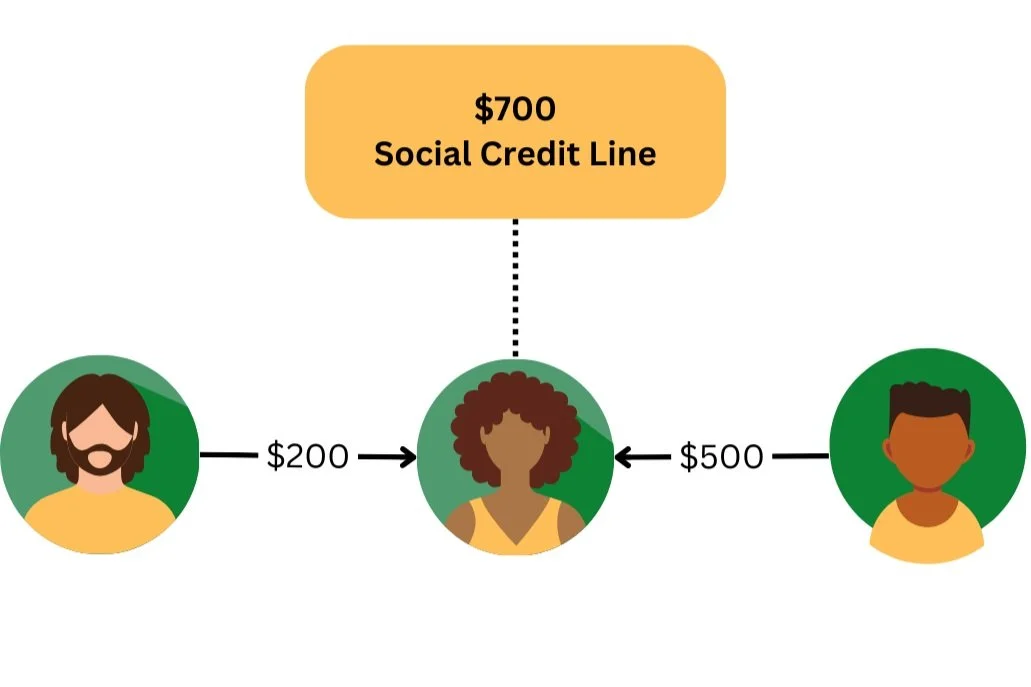A social credit line is the total amount you can borrow from your network of family and friends. Giving Credit creates your social credit line when you extend credit to your network, and they do the same for you. Each time someone extends credit to you, it is added to your total social credit line.